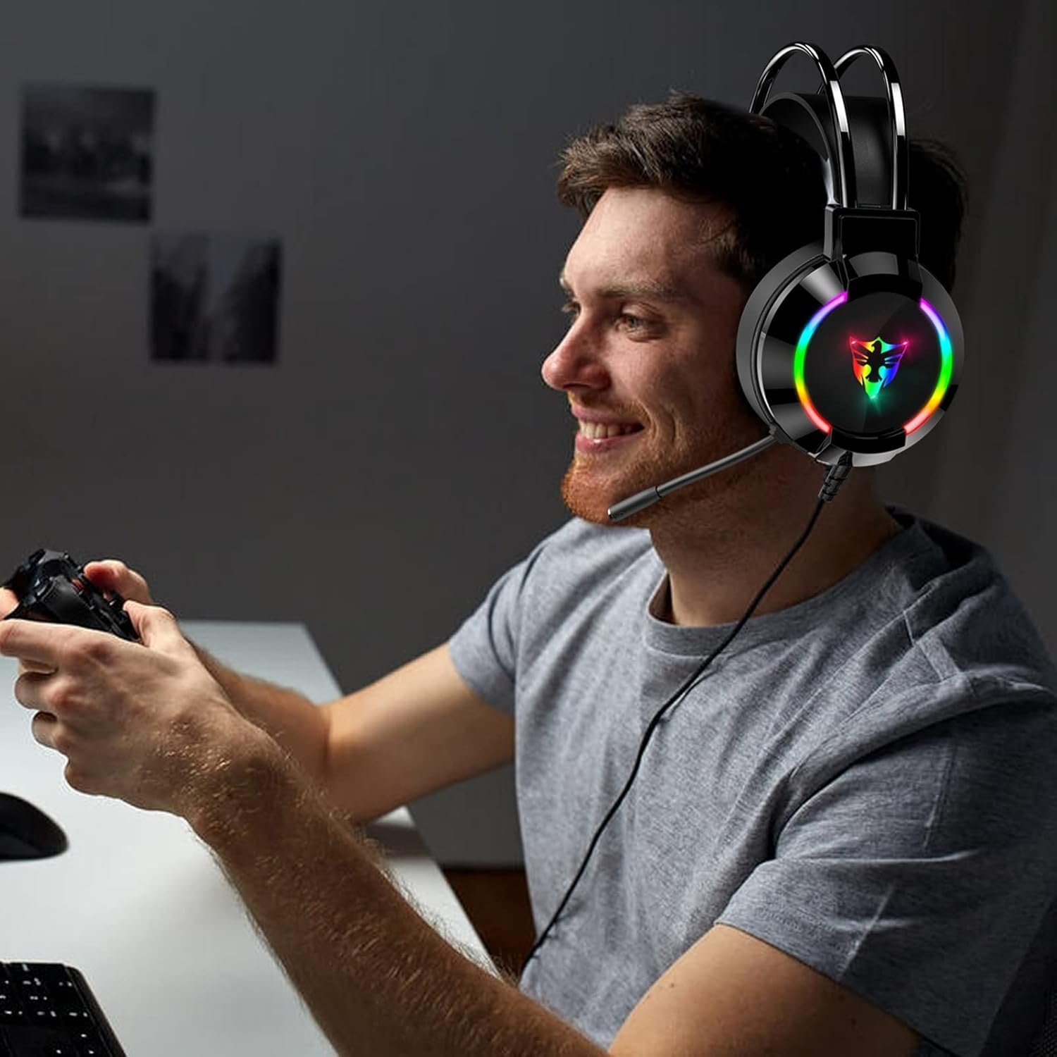 ميكروفون احترافي وتواصل نقي: تواصل مع فريقك بوضوح تام بفضل الميكروفون المدمج الذي يدعم خاصية إلغاء الضوضاء (Noise Reduction). الميكروفون مصمم لالتقاط صوتك فقط وتصفية ضجيج الخلفية، مما يضمن عدم وجود أي تشويش أثناء التخطيط للهجمات الحاسمة. كما أن تصميم الميكروفون المرن يسمح لك بضبطه في الوضعية المثالية لك، أو كتمه تماماً عند الحاجة بلمسة واحدة من لوحة التحكم المدمجة.